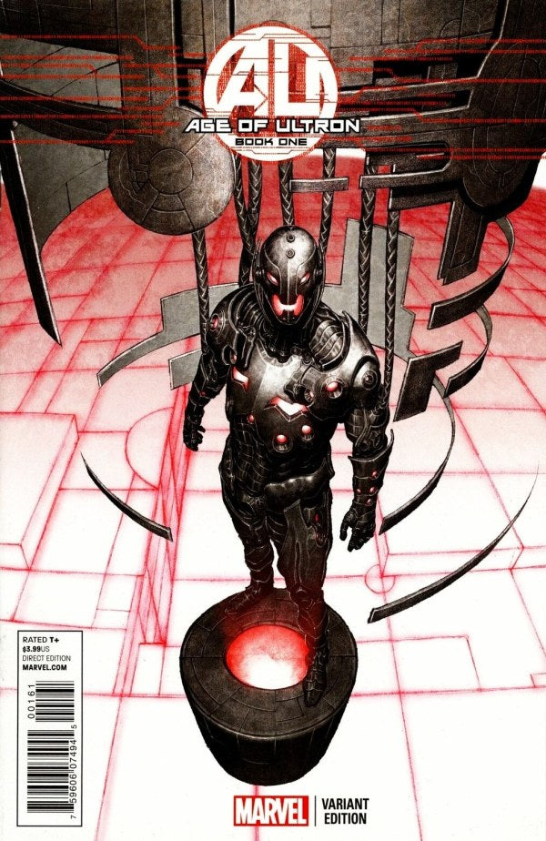 Limited 1 for 25 Variant Cover by Rock-He Kim. Written by Brian Michael Bendis. Art by Bryan Hitch. For years the heroes of the Marvel Universe have lived in fear that the artificial intelligence known as Ultron would one day evolve to fulfill its desire to wipe out all organic life and take over the Earth -- that day has arrived. Cover price $3.99.